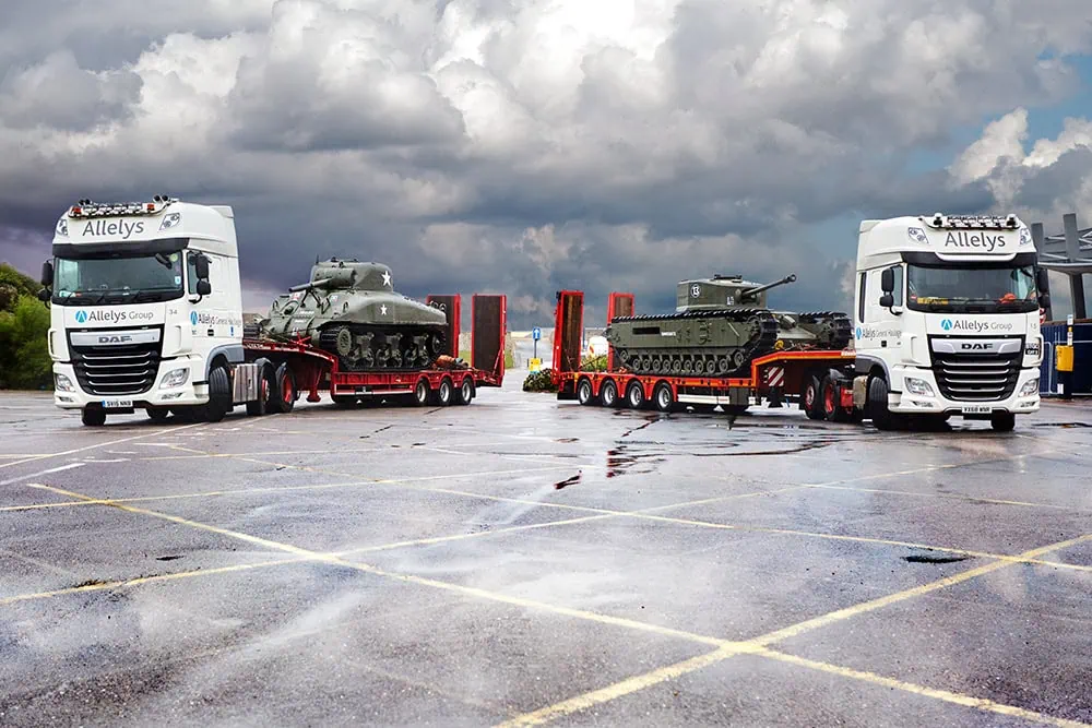Allelys transported the piece 800 metres to Clarence Esplanade and jacked it down using 8 synchronised climbing jacks. A 200te mobile crane was then utilised to load a Churchill tank and a Sherman tank onto the Landing Craft. The final stage was to skid the piece, using 4 lines of heavy duty skidding equipment, into its final position.