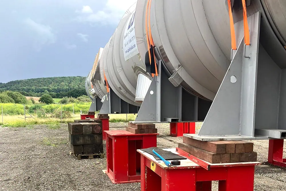 Allelys original scope of work was to receive and deliver two large vessels, the first being 30m long and weighing 130te and the second 12m long and weighing 29te. However, this scope increased when Allelys were further contracted to deliver additional loads to site consisting of 5 smaller vessels weighing up to 4.5te and two ancillary boxes.