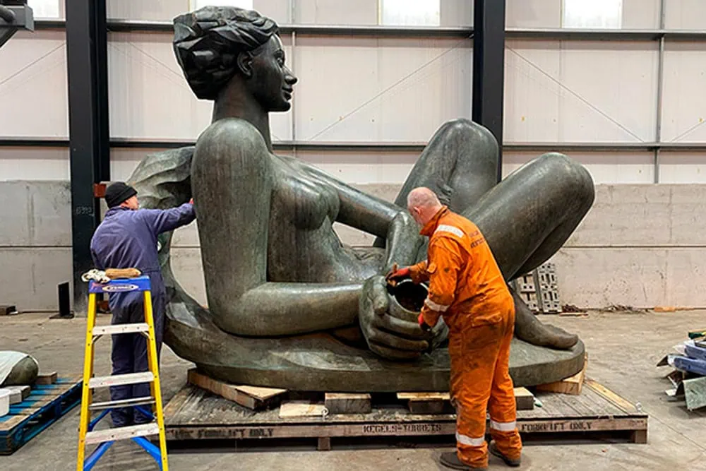 The fountain elements, the heaviest being the Goddess weighing 2te, were required to be removed to undergo repairs prior to being reinstalled in time for the 2022 Commonwealth Games.
